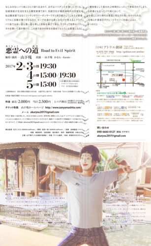 バリ島を訪れ伝統舞踊のリサーチを始めた山下残は、観光客として歓待を受けるより、コンテンポラリー・ダンサー=「伝統を侵しにきた現代の悪霊」であることを選択し、そうすることでコミュニテイの論理に自身の場所を見出す。そのプロセスをめぐる師弟の対話とパフォーマンス。