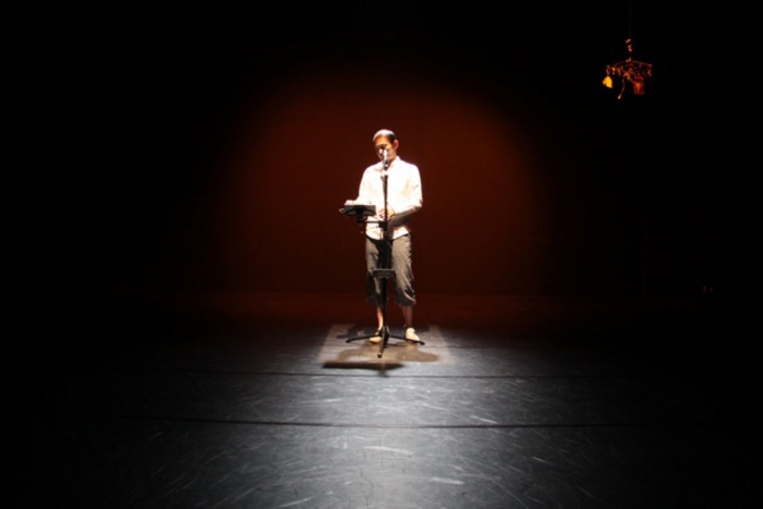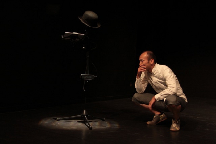 彼は客入れの時間から舞台に居り、「今日はあついですね」「空調いい感じですか?」などと客席に座って開演を待つ私たちに、演技とも日常会話ともつかない雰囲気で話しかけていた。「それでははじめます」と言って袖に引っ込み、再び出てきた彼は、先ほどの彼とさほど変化無いように見える。開演までのあの会話から、彼のショウは始まっているのだろう。瞬時にリラックスするのが難しい舞台の上で彼は自由にしゃべれるのだ。それほどまでに彼は舞台というものの空気感をひとりで操ることができ、知らぬ間に観客を引き込むことができるので、観ているこっちも油断してしまうほど、演技と現実の境が曖昧だ。彼は舞台の恐怖など感じていないのだろうか。