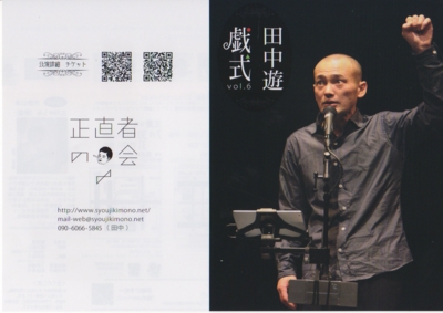 「戯式vol.6」は三部構成になっており、第一部がこのラジカセを駆使した「第二回田中会議」。第二部は俳優広田ゆうみをゲストに迎えての「古事記」の朗読。第三部は「有線人種」と「無線人種」という二種類の人間が存在する世界の差別と区別を描いた「有線の星」と題された物語を、田中がまたもやiPadの音声アプリを駆使してひとりで上演するというもの。
