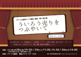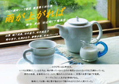 [出演]伊藤さだ子、城下成美、関口陽子、田中賢一、中嶋康喜、西口節子、古屋正子、丸茂ひろ子/氏田敦(客演・劇団冬芽舎)