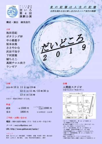 出演:稲田喜之、上村けいこ、島勝美、杉岡浩子、壇怜和(高槻公演のみ)、中西晴江、西木達夫、布浦真、久生悦子、宮城詩朋(大阪公演のみ)、むねつぐゆみ、山地美子、吉山友美