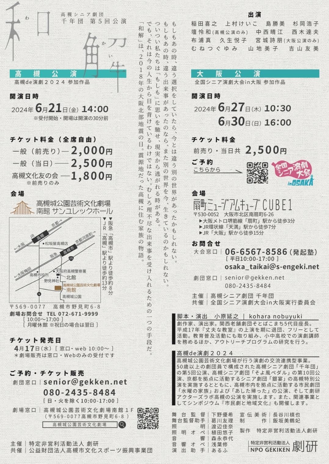 2024年6月 高槻シニア劇団 千年団 第5回公演『和解』