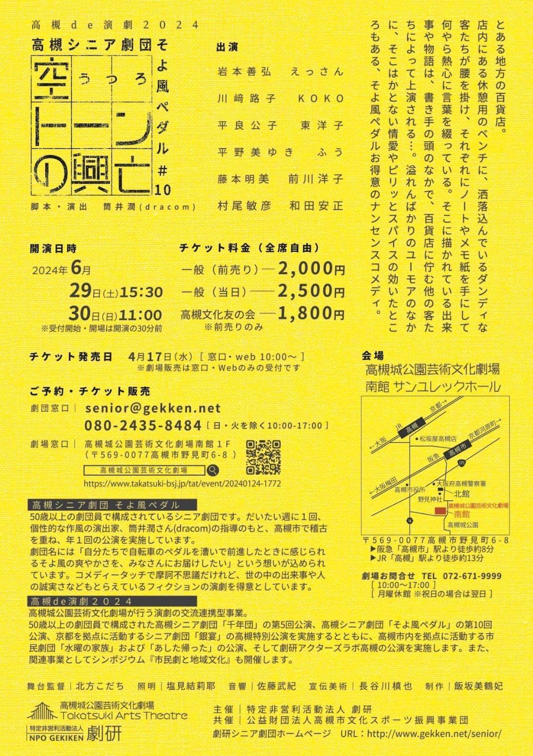 2024年6月 高槻シニア劇団 そよ風ペダル 第10回公演『空トーンの興亡』