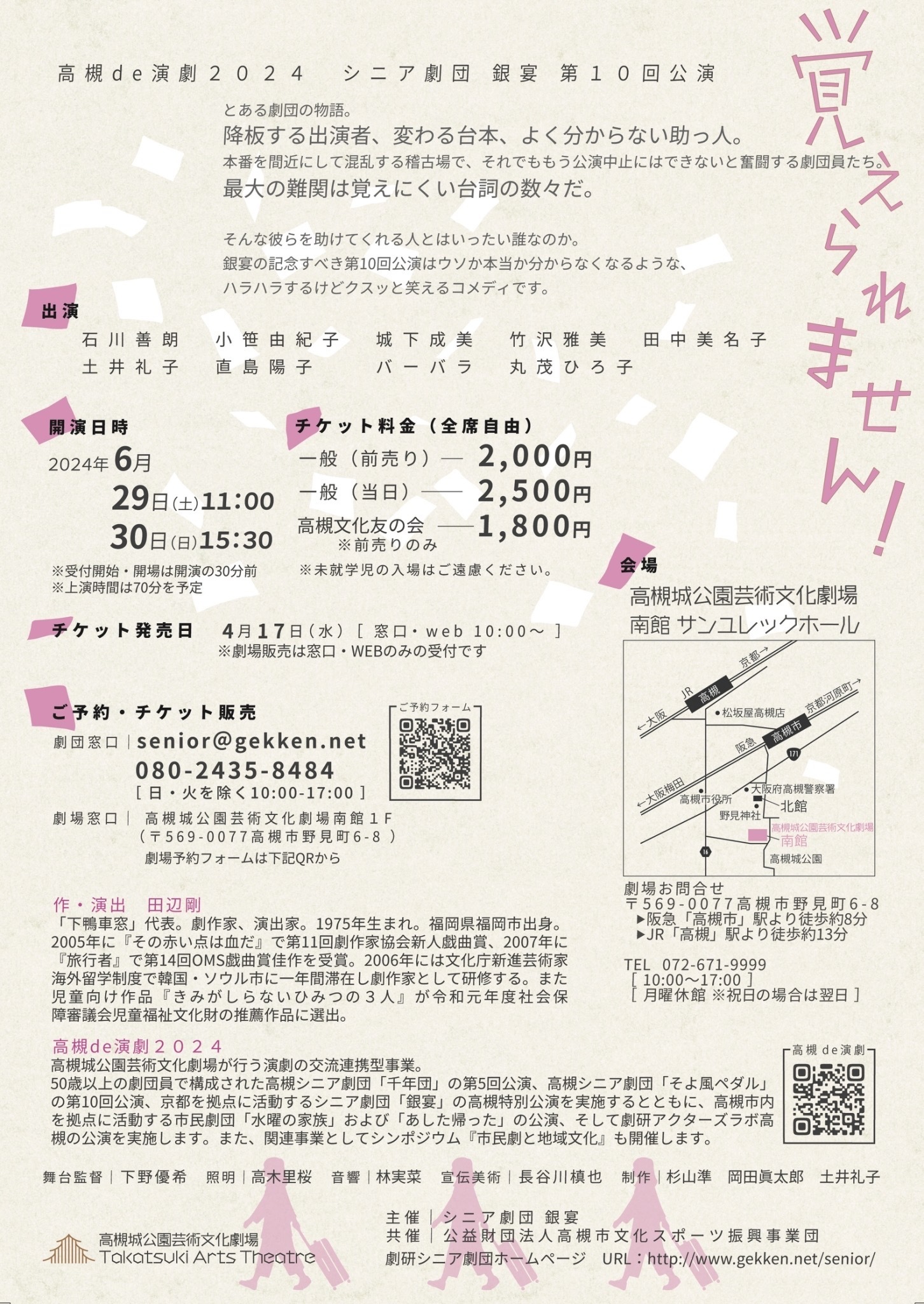 2024年6月 京都シニア劇団 銀宴 第10回公演『覚えられません!』