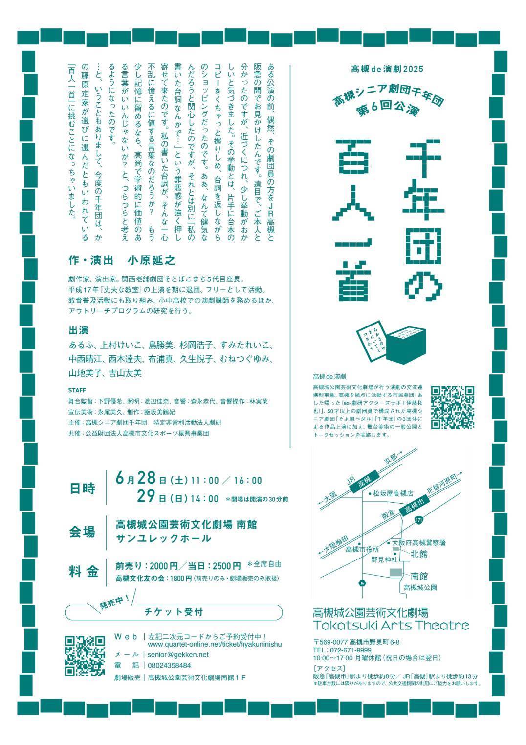 主催:高槻シニア劇団千年団、特定非営利活動法人劇研