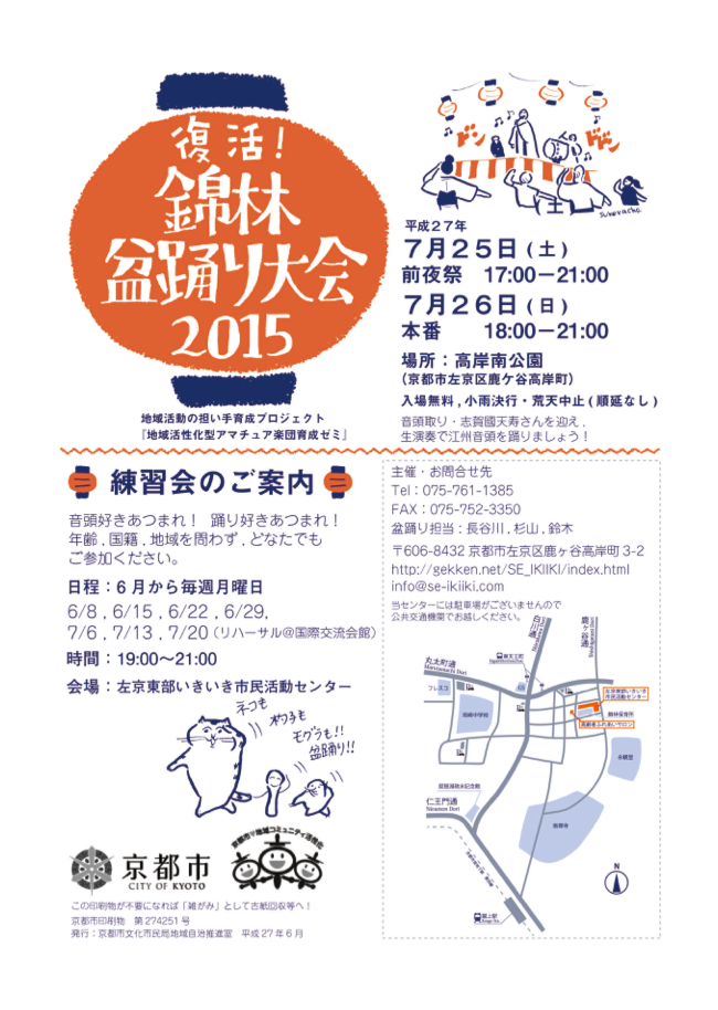 『復活!錦林盆踊り大会2015』前夜祭・本番に向けて6月から毎週月曜日に盆踊り練習会を開催しています。