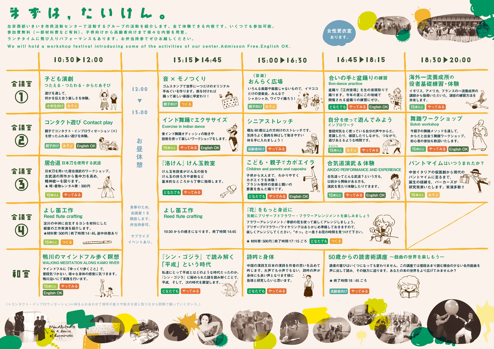 内容:コンサート、ワークショップ、写真、絵画の展示。