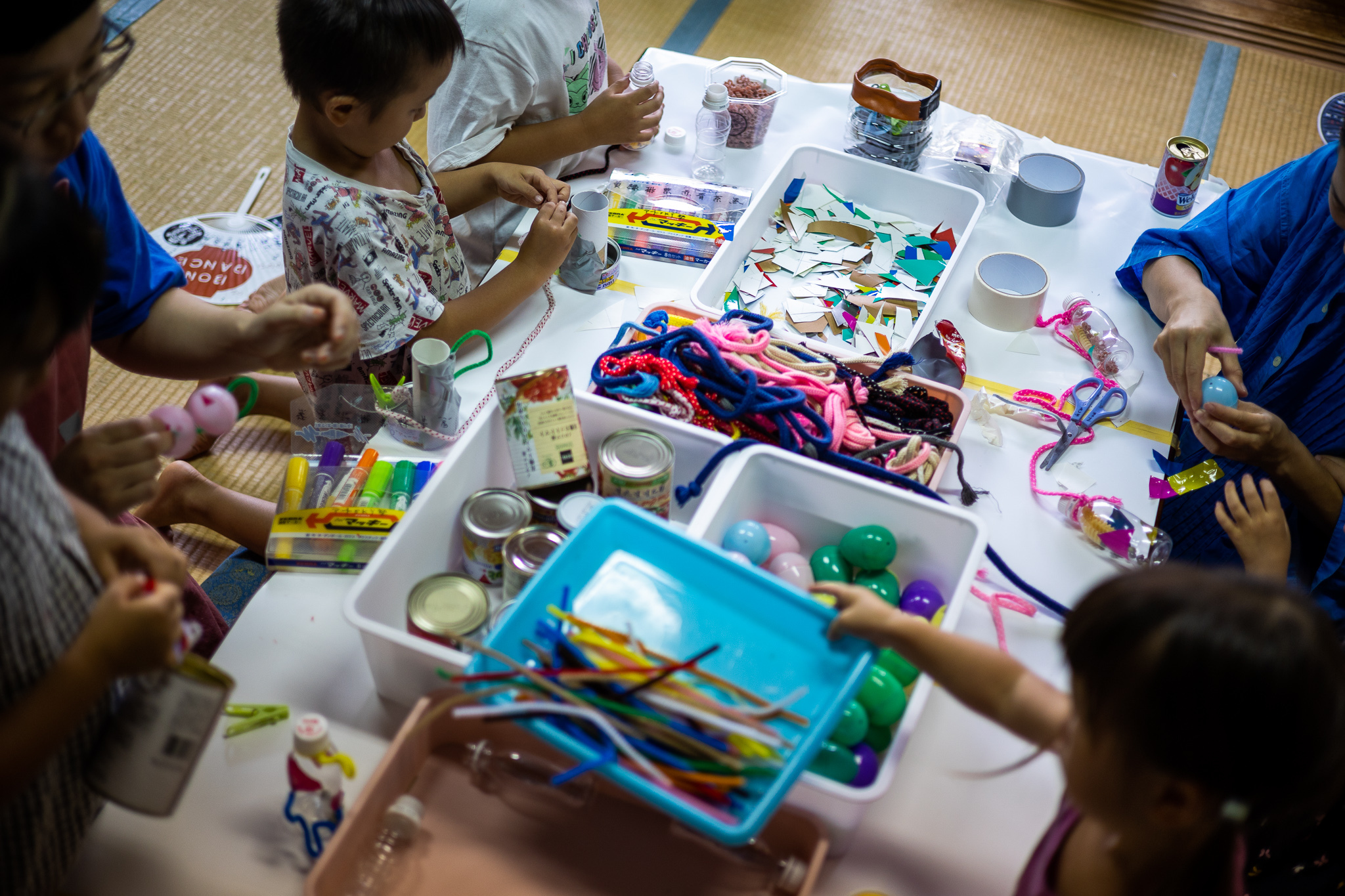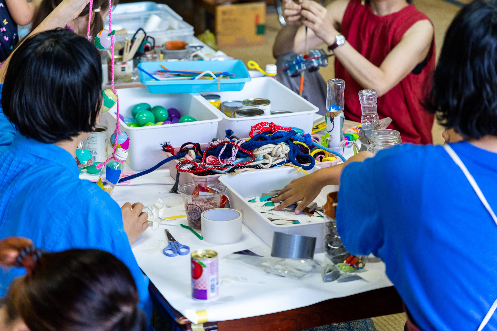 頭ではなく、まずは手を動かすことを大切に地域からから集めた端材や不用品などを素材としたアートワークショップです。年齢や立場、障がいに関わらず、みんなのアイデアが楽しめる場づくりを目指してます。