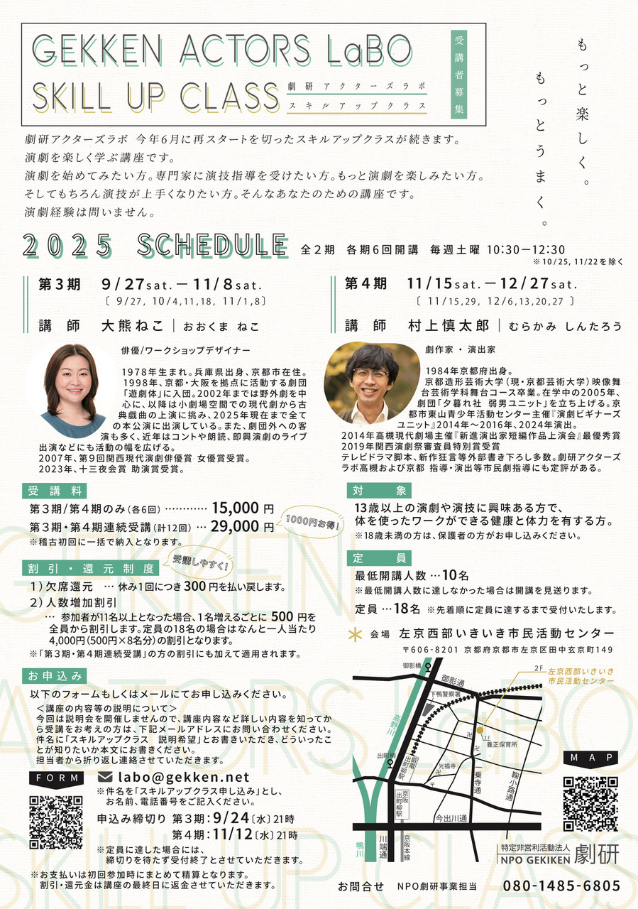 劇研アクターズラボ スキルアップクラス(第3期&第4期)