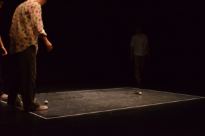 この作品は、若手の俳優を目的とする「劇研アクターズラボ」という企画の中で製作されましたが、やがて稽古場での関心は、日本と中国の関係について考える事に向かいました。それは、2017年の秋に京都で上演が予定されている、〈日本・中国・韓国〉に関わる村川拓也の新作公演に向けて必要な過程であり、同時に、演劇がどのように現在に関わるのかを考えるために、不可欠な関心であったのかもしれません。