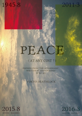 1945年から70年の2015年8月、紀元前425年にアリストパネスによって書かれた最古の平和物語といわれるギリシャ喜劇『アカルナイの人々』をモチーフに、現代における「平和」について考えます。戦争中に一軒だけ敵国と和平を結んだ家の中と外で起こる様々なこと、争うこと、争わないこと、果たして平和とは何にも代えがたいものなのか。新メンバー加入後の新生東京デスロックの初陣を京都から始めます。