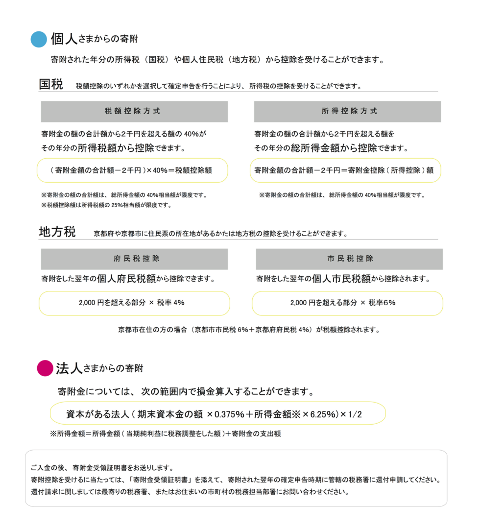 寄附金額に応じてフェス観劇と税控除を受けることができます。