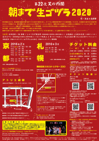 笑の内閣10周年記念 最後の公演は、笑の内閣10周年 ゴジラ誕生60周年を記念して、旗揚げ公演で上演した怪獣の出ない