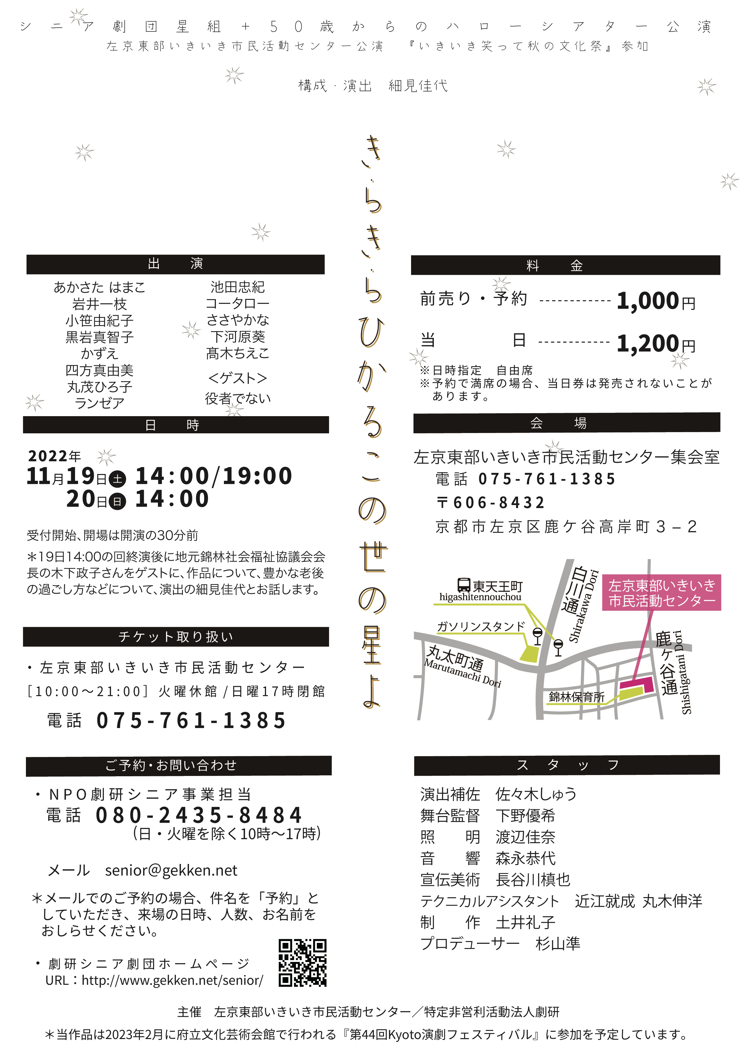 2023年2月 星組+50歳からのハローシアター 京都演劇フェスティバル参加公演「きらきらひかるこの世の星よ」